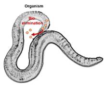 Elimination rate indicates the speed at which an organism excretes material. The elimination rate constant (k2) has the unit day-1, indicating the fraction eliminated each day. Similarly to the uptake rate, different routes of elimination are generally considered conjointly when evaluating the elimination rate, although route specific rates (e.g. for dermal versus faecal elimination) can be assessed and included in the modelling.